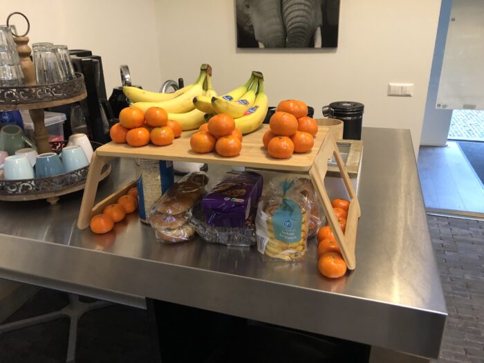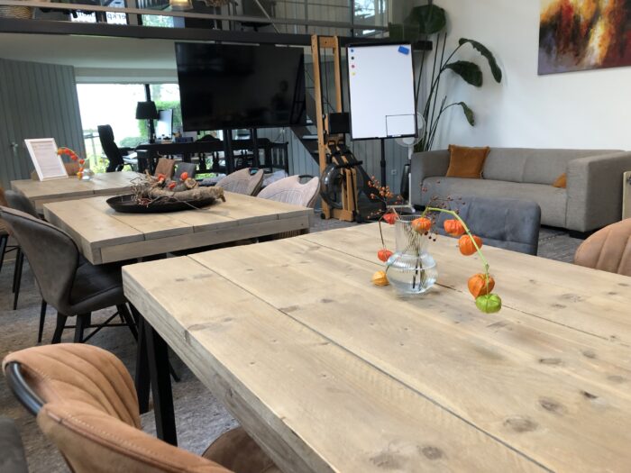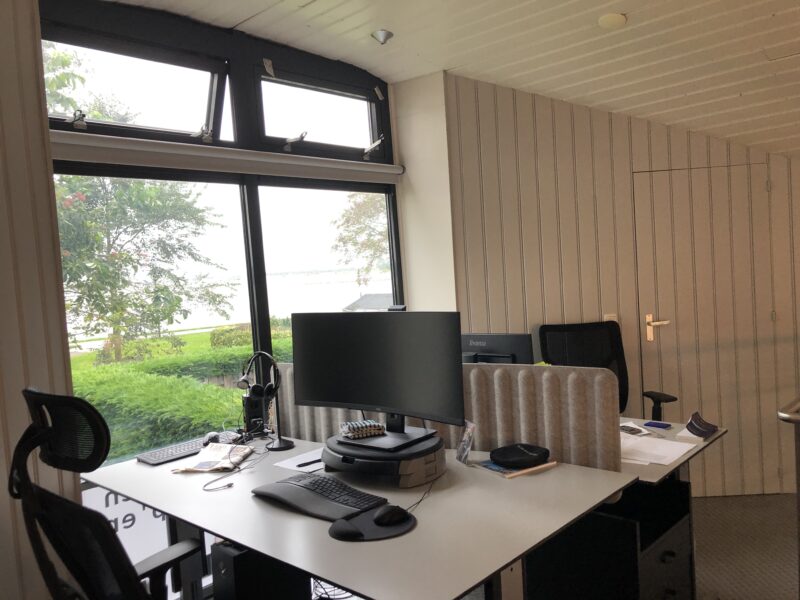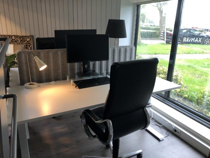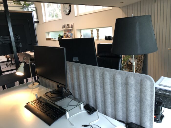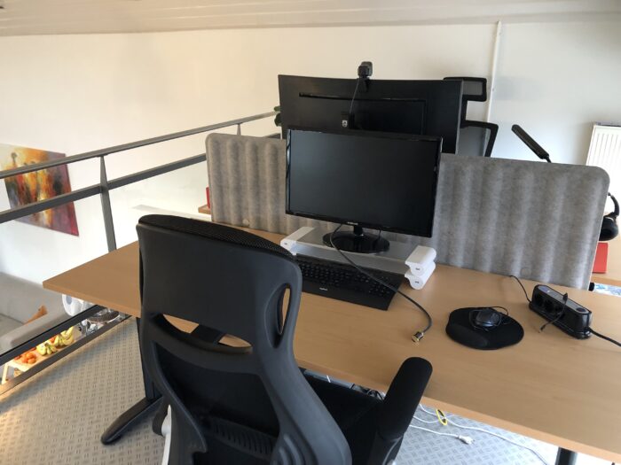 Hoe zien onze werkplekken eruit? We hebben er net wat foto’s van gemaakt. Twee bureaus zijn elektrisch verstelbaar tot sta-hoogte, dat is beter voor je gezondheid. Als je hier eenmaal werkt, vragen we af en toe wat er beter kan. Zo kunnen we de werkplekken optimaliseren. Denk aan betere bureaustoelen, monitoren, et cetera. Maar voor nu is iedereen tevreden: check de Google-recensies.